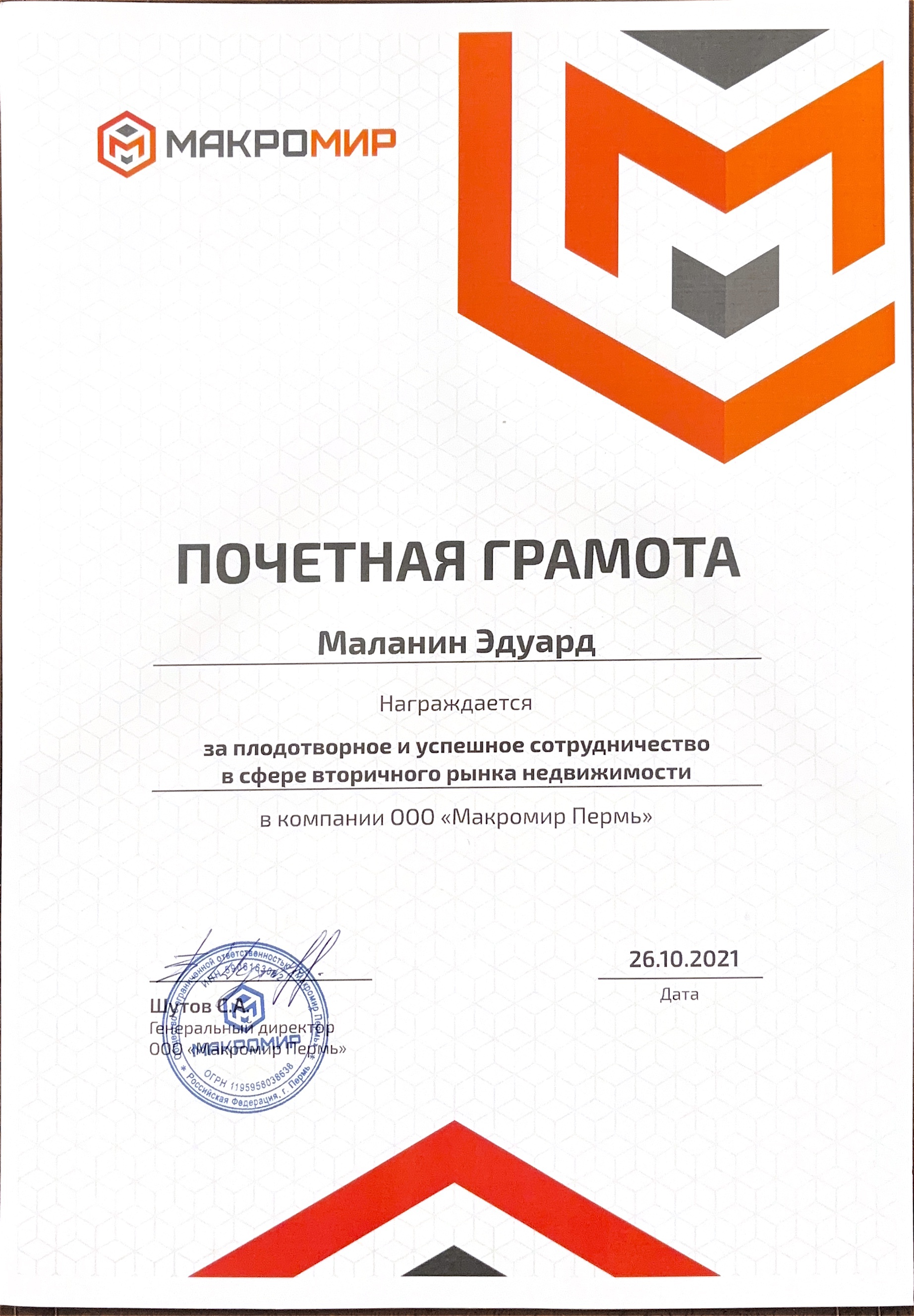 Огромное спасибо , за отлично выполненную работу. Без , Вас мы бы так быстро и качественно не справились. Эдуард- эксперт своего дела , это точно. Граматен с документами , очень стрессоустойчив . Эдуард, смог сделать практически не возможное за короткий срок. Подошел к делу ответственно, скупулезно! Поможет, подобрать неждижимость по душе. Выполняет свою работу НЕ тяп-ляп, а четко! Замечательная компания"МАКРОМИР", не обманут, им можно доверять , гарантия 100 процентов. Будут специалисты от самого начала процеса ,до конца, всегда ответят и помогут на любой вопрос.Советуем!!!Не пожалеете! С мужем еще раз БЛАГОДАРИМ, Эдуарда!