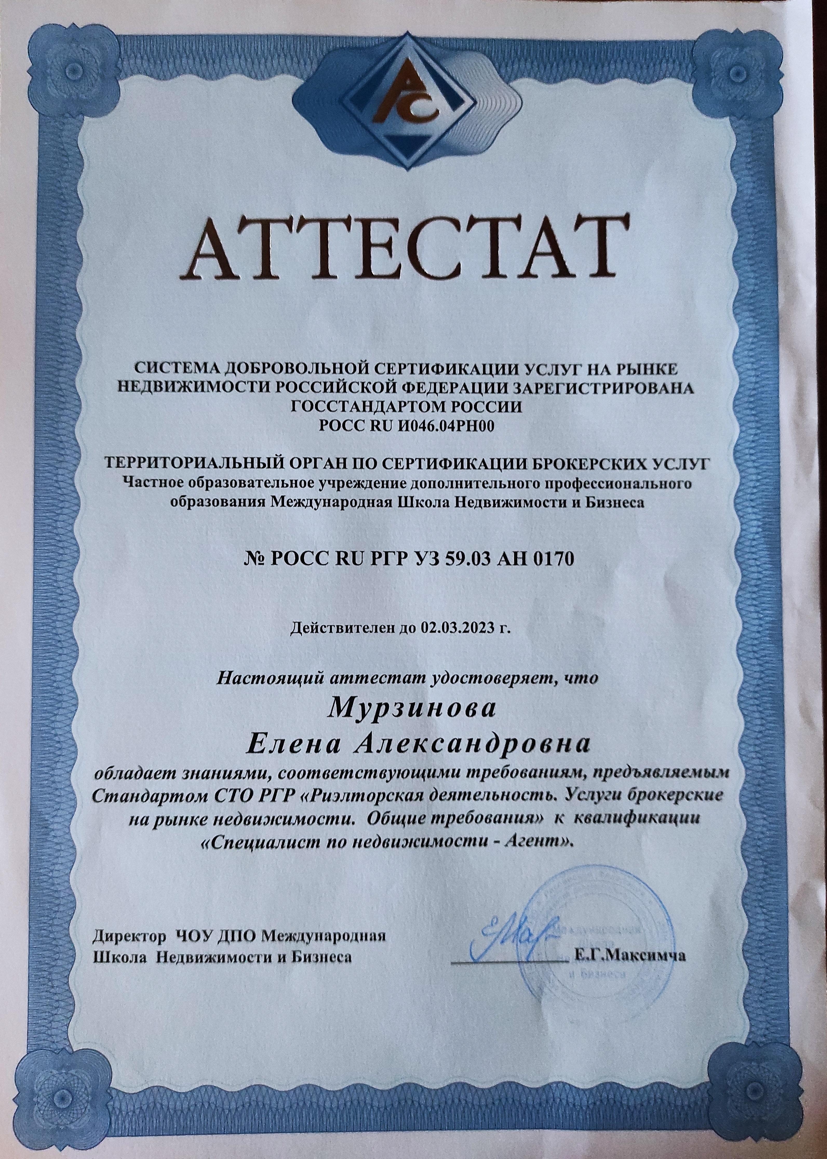 Елена Мурзинова, отличный сотрудник, профессионал своего дела. На время нашего сотрудничества проявила себя как ответственный и надёжный человек! Всегда на связи, учитывала все наши пожелания. На просмотрах всегда с нами. Вела нас от начала до принятия ключей и даже после по некоторым вопросам. Очень рады и благодарны за работу с Еленой. Будем всем рекомендовать. Светлый, чистый и честный человек!!! Желаем Елене много клиентов и удачи во всём. Добра и здоровья!!!