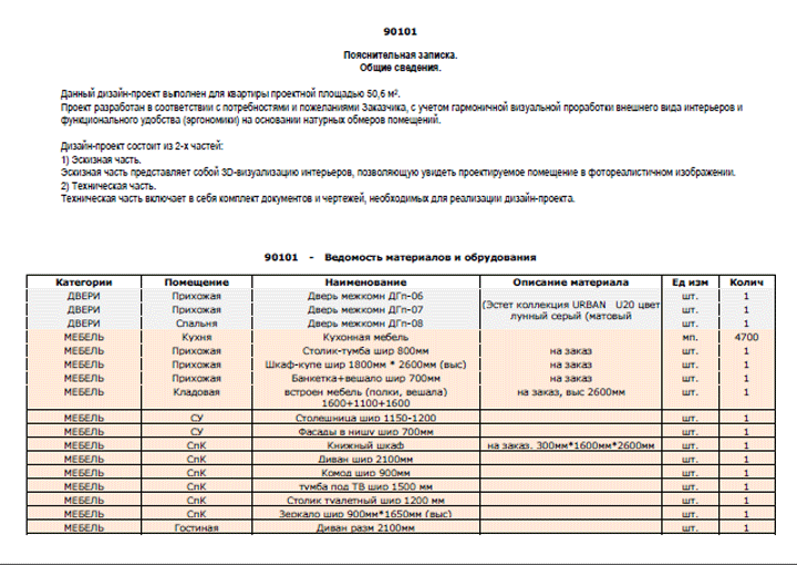 Профессиональными дизайнерами для вас будет выполнен дизайн-проект, содержащий полную документацию по ремонту вашей квартиры или дома. Будут учтены и отражены все ваши пожелания в эскизах и чертежах. В Ведомостях будет содержаться перечень отелочных материалов, мебели и оборудования, необходимое для вашей квартиры. Вам предоставят список магазинов где можно будет все это приобрести.